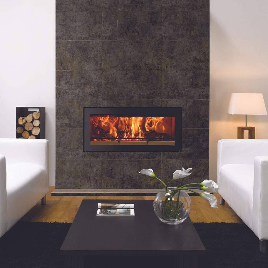 Studio 2 Inset Wood Burning Fire with Edge+ frame. 8.5kW output.